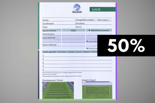 Document your games and the performance of your goalkeepers. 2 notepads, A5, 2 x 50 pages