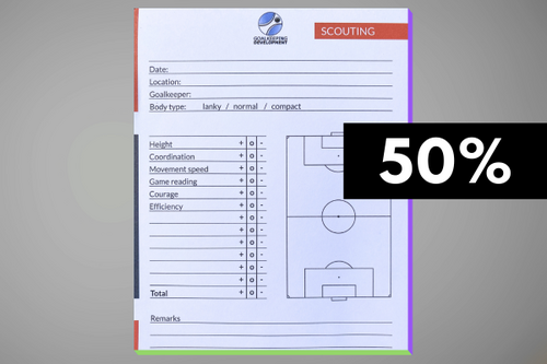 Observe interesting goalkeepers and note down the most important strengths and weaknesses. 2 notepads, A5, 2 x 50 pages